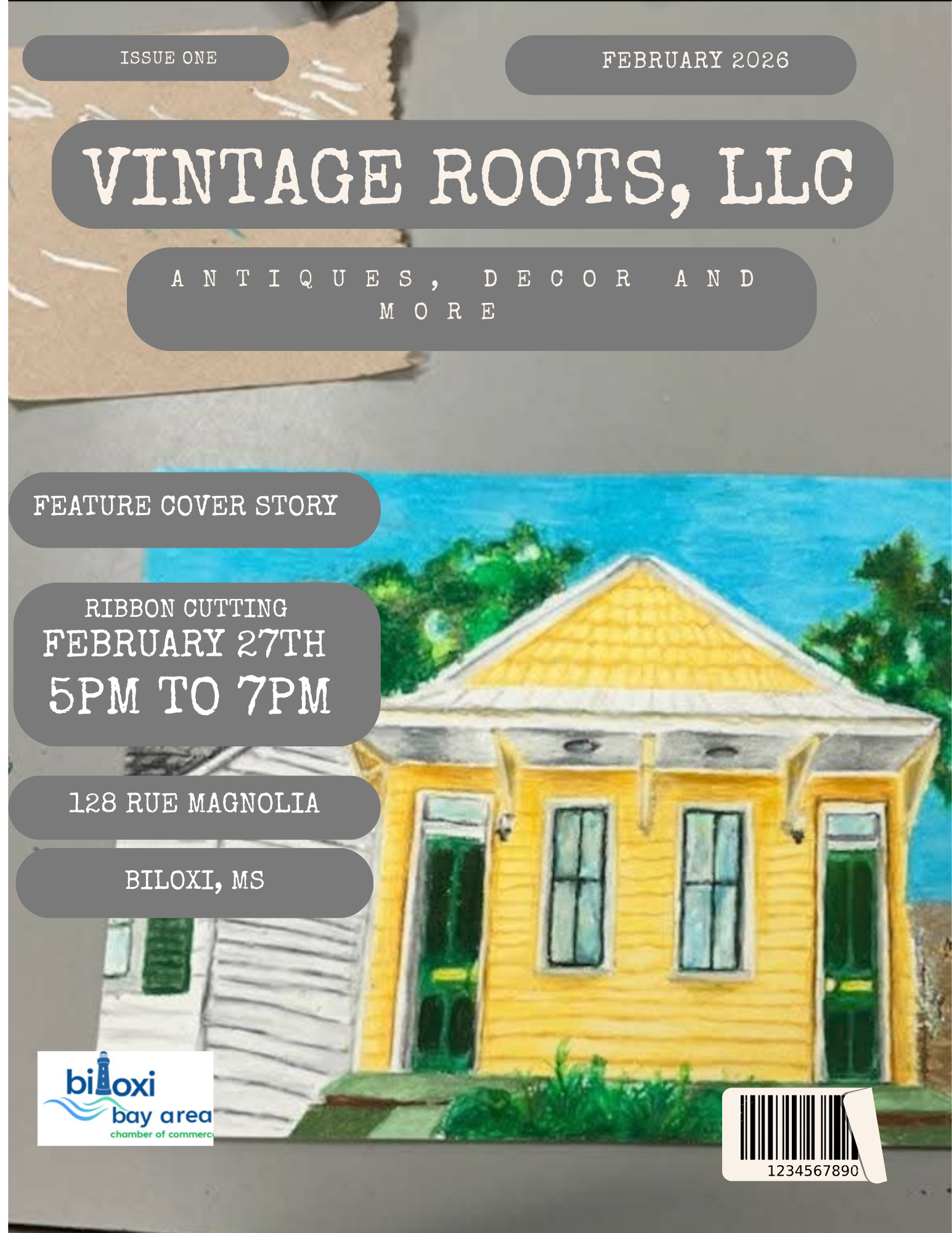 Ribbon Cutting for Vintage Roots, LLC. February 27 @ 5:00 pm - 7:00 pm CST Vintage Roots 13109 Shriners Blvd., Biloxi, MS, United States
